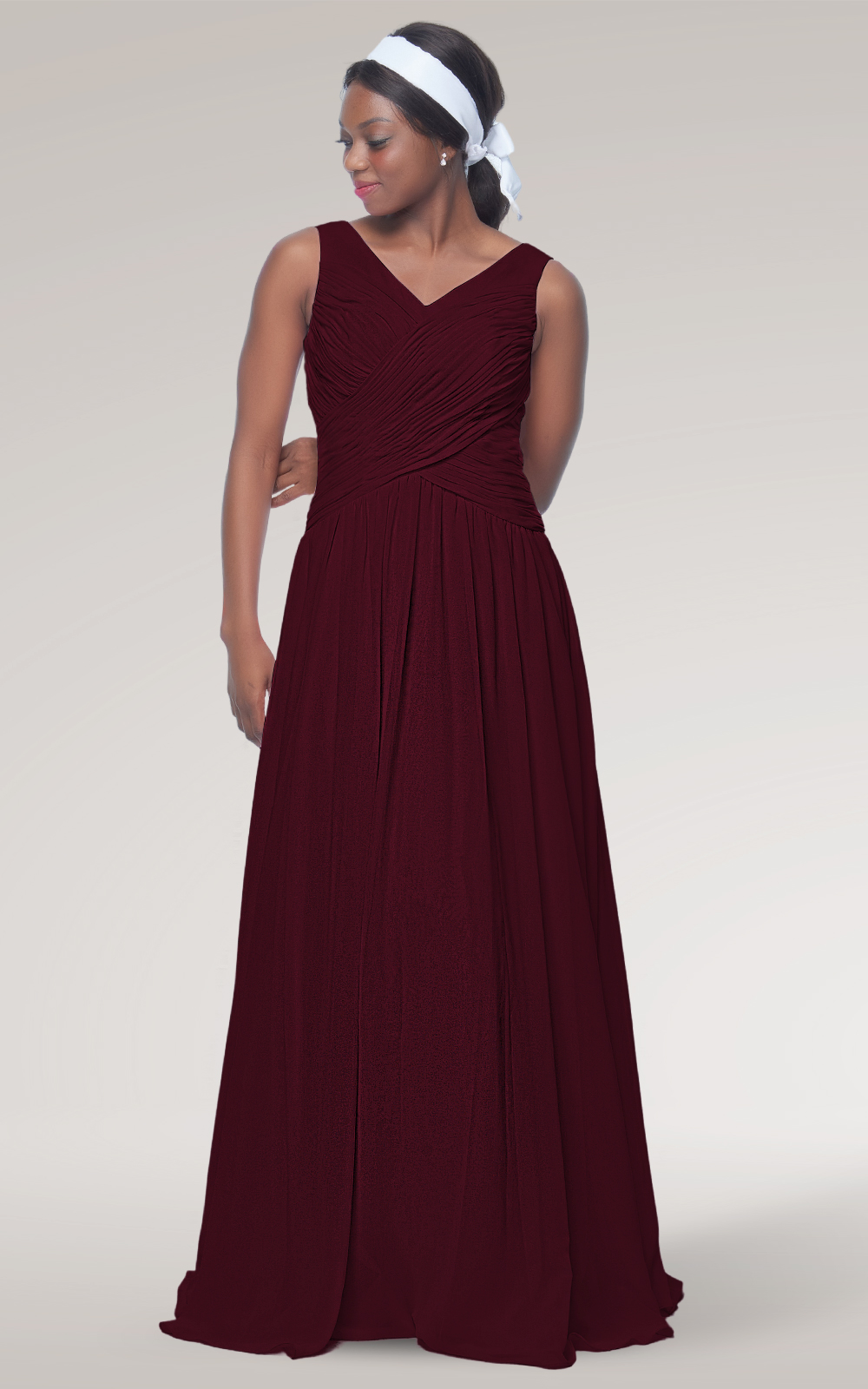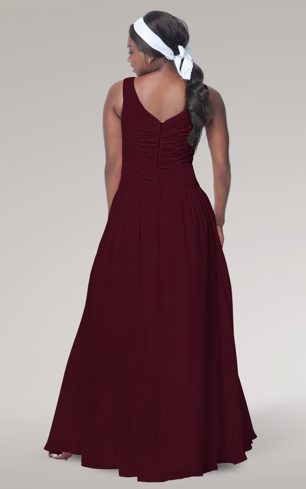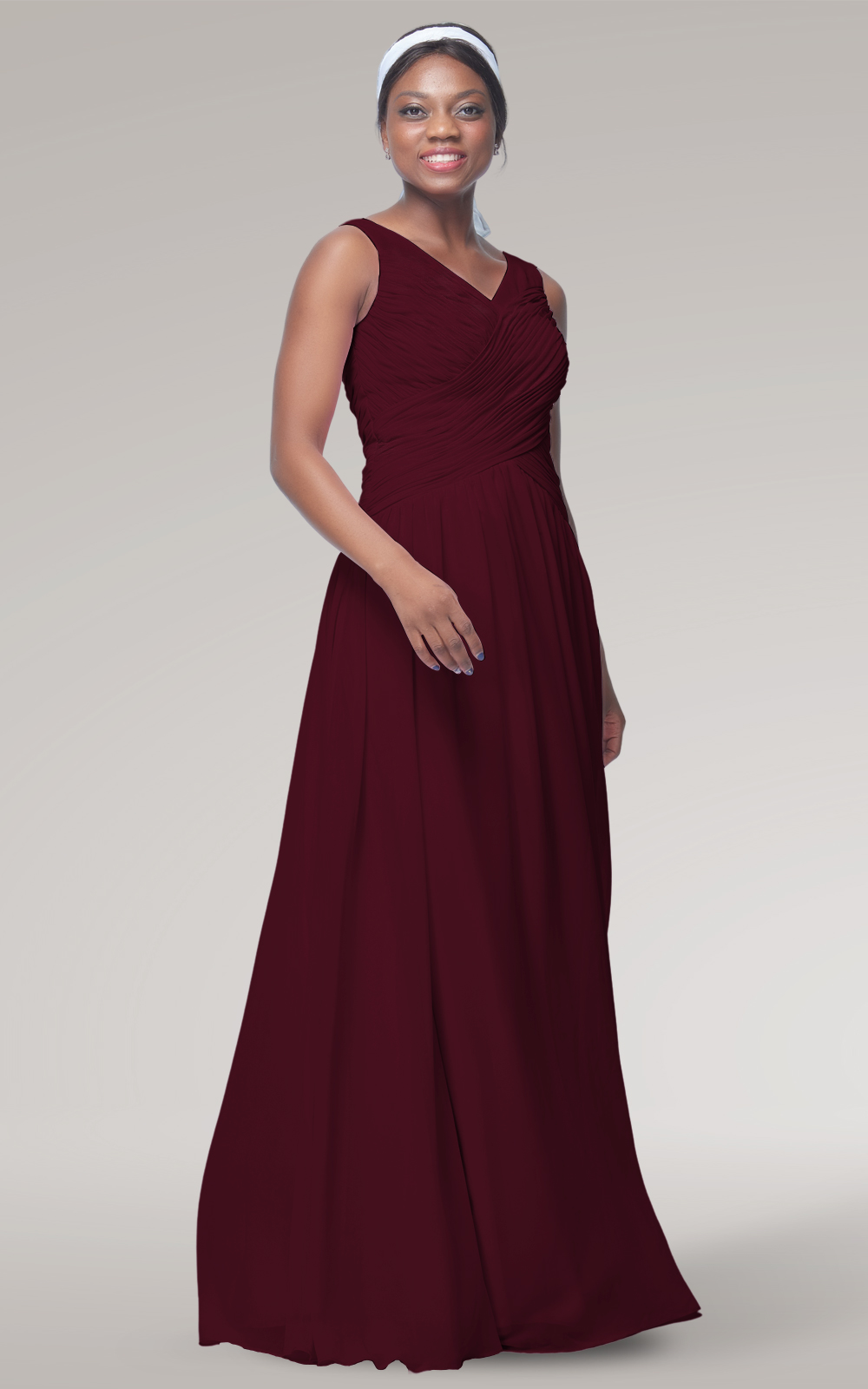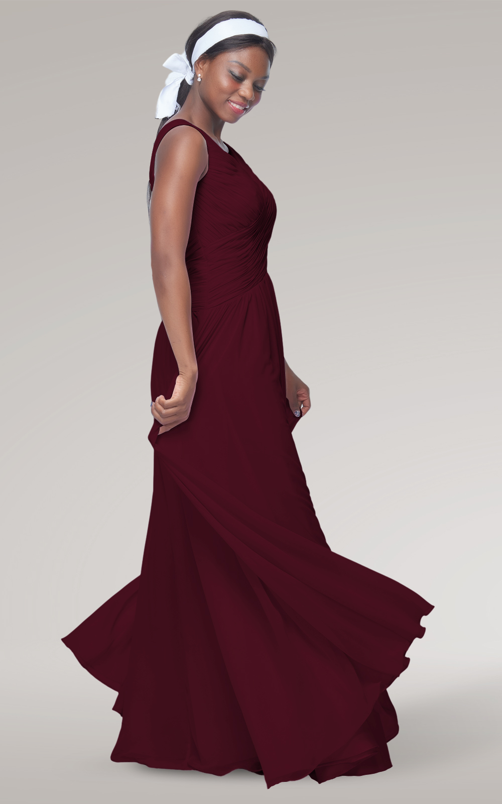 Bird makes your bridal party look fabulous while standing next to you on your special day. It's a floor-length chiffon dress with an A line cut.